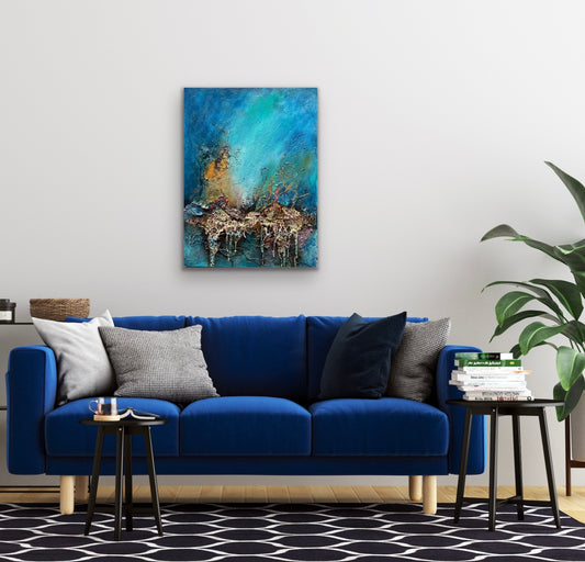 I first saw this painting on Afterdita's post on Facebook and thought I had to have it. Off I went to her home studio to view and bought 2 of her paintings! I love the colours, use of textured materials, vibrancy and fun of these two paintings. The little fish and seahorses are so adorable and the coral really stands out. I couldn't resist also buying a smaller painting in the same style. They look great on the white wall of my landing. Afterdita is such a talented and original artist and I'm so happy that her talent is more widely recognised.