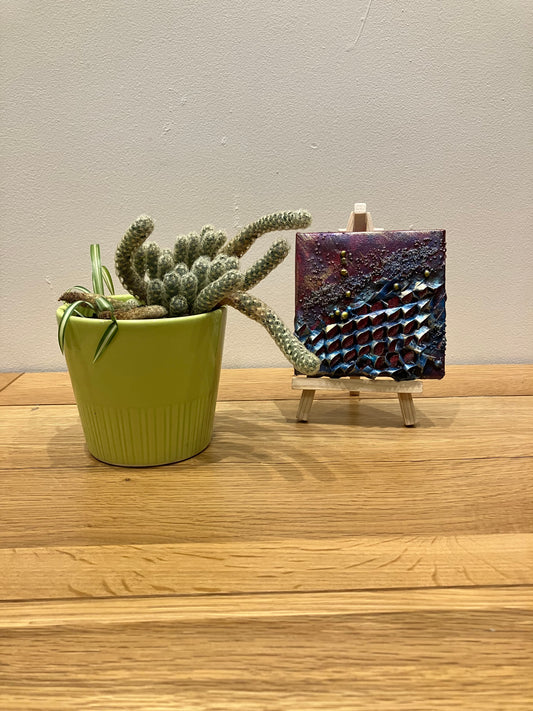 10 x 10 cm Textured Abstract Painting with Easel