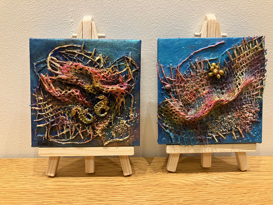 Sold out10 x 10 cm Wave painting with Easel