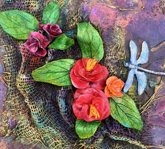 Chery Blossom triptych - Mixed Media Wave Painting (SOLD)