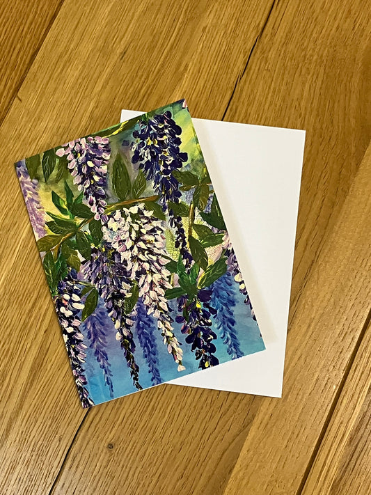 'The Golden Queen' A Wisteria and Butterfly Greeting Card with White Envelope